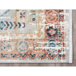 This charming area rug is inspired by classic Persian-style rugs. Tinted in earth toned colors, this rug features an oversized star-like medallion in the center surrounded by beautiful blue ornate border. The rug is created to offer a delicate feel and its weaving process has never made cleaning a rug easier.