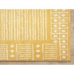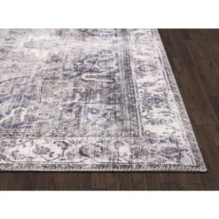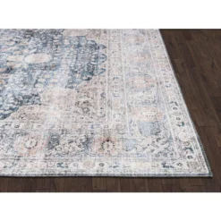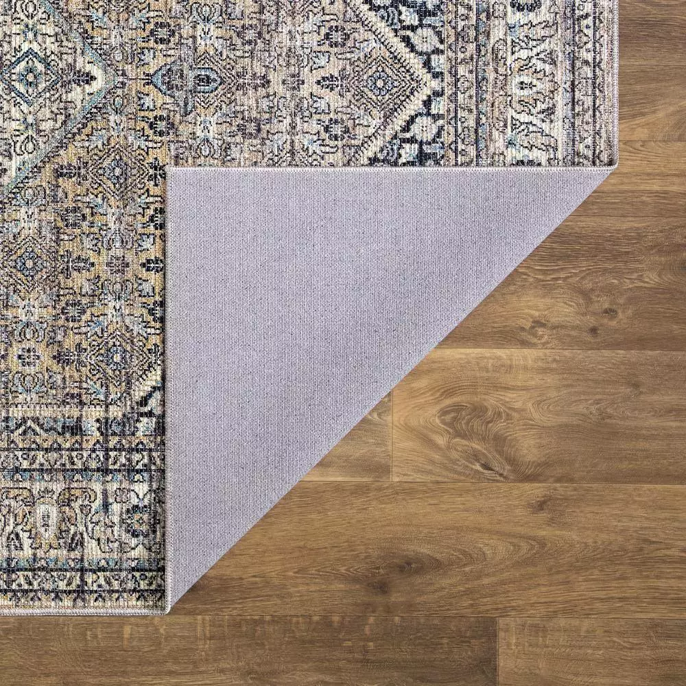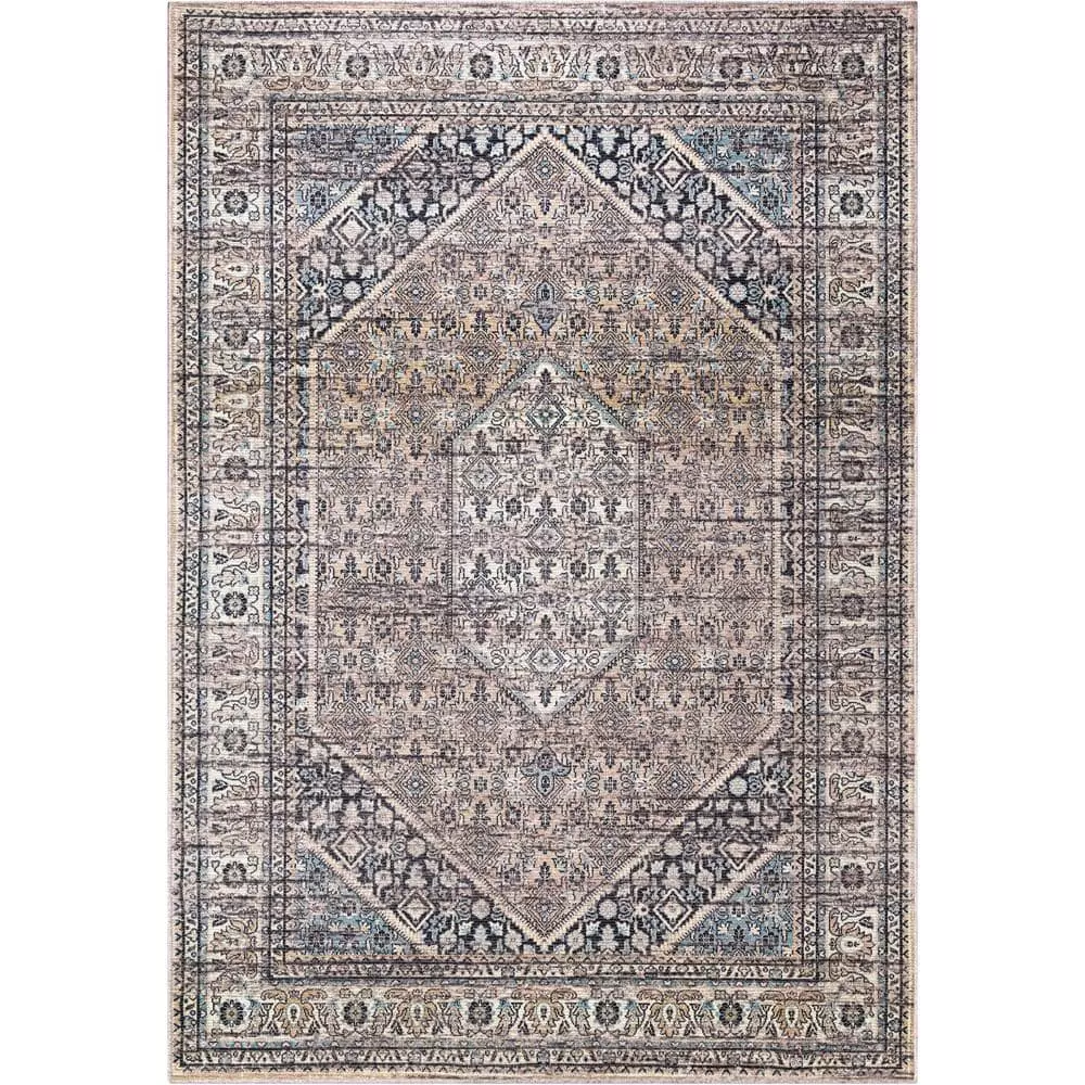 A geometric pattern featured in a vintage inspired rug creating a rustic appeal. This rug features a soft brown color in addition to other earth tones. The rug is inspired by oriental rugs and features a large hexagon medallion with an ornate border. It’s colors include tinted rich browns, honey, gold, and creams, purposefully distressed to create a warm and rustic vibe.