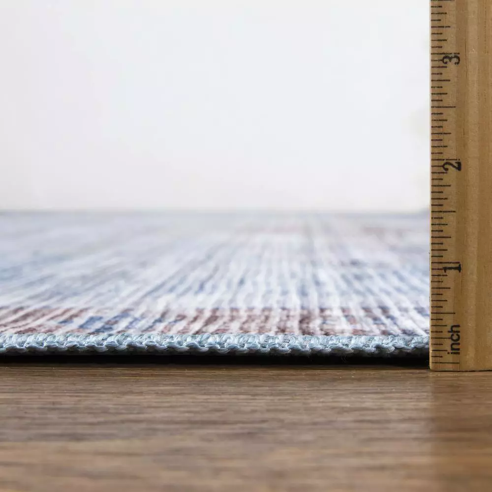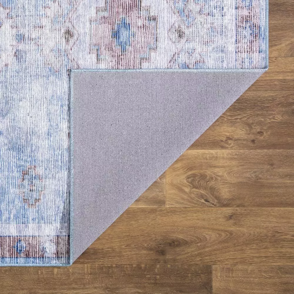 This rug recreates a new vintage feel for the ultimate farmhouse styled space. The rug from our Molana collection features a washed out stunning blue color bordered by a deep red border. Largely inspired by handwoven Turkish vintage rugs. Get the look of vintage without the upkeep it needs. Easy to maintain, non shedding and designed for high traffic areas.