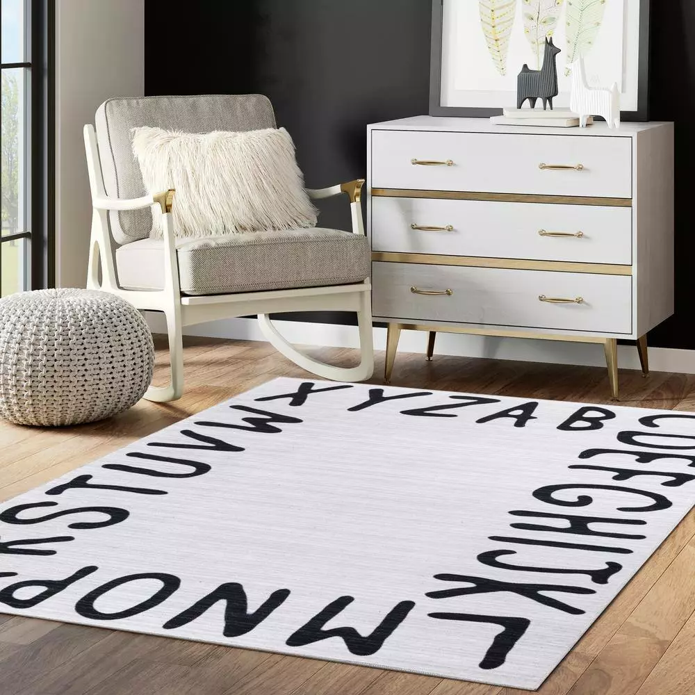 Learn your A-B-Cs with this daring and educational area rug. Who said learning can’t be fun? This contemporary rug combines the fun of play with the excitement of learning. Though simple, the border of this greyscale rug covers the entire alphabet, helping kids learn their letters one at a time. Whether used as a statement piece in a child’s playroom or learning aid, this is an area rug that’s designed to grow with your child without sacrificing durability or comfort.