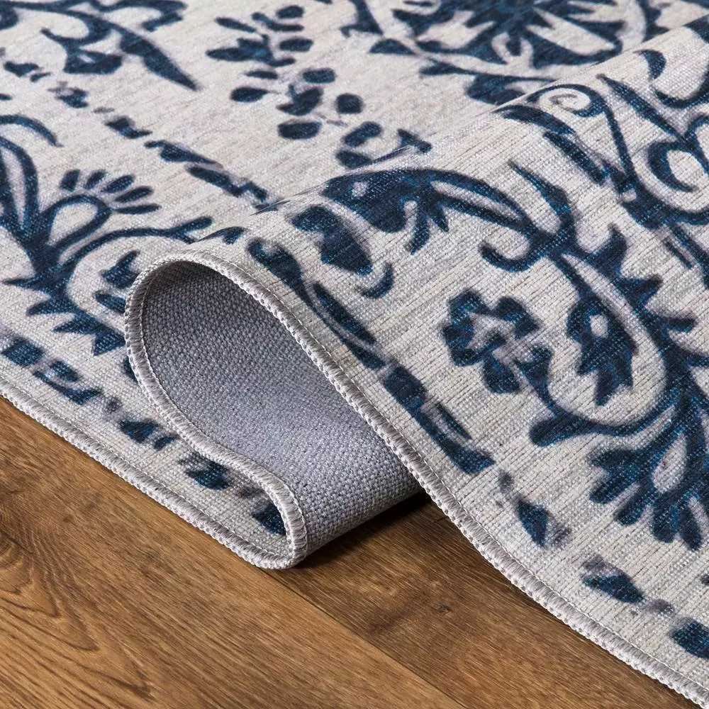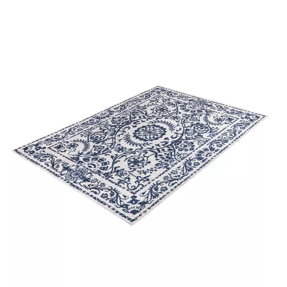 Brighten up your house with this mesmerizing and elegant rug. A unique design made with intricate flower vines inspired by the traditional greek woodblock printing. A perfect rug to brighten up any room with its cream background and soothing blue design. Pair the rug with a few pieces of porcelain to create a lovely inviting space.