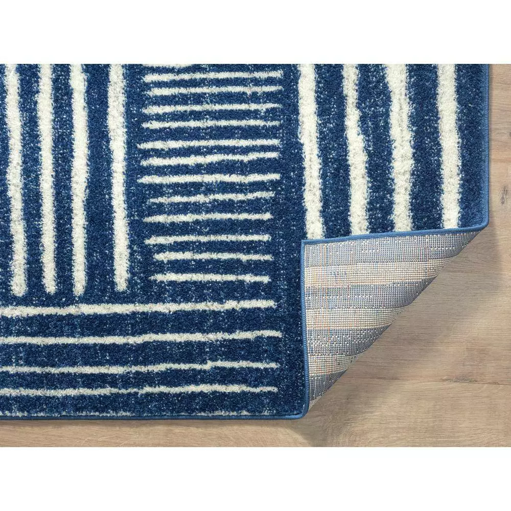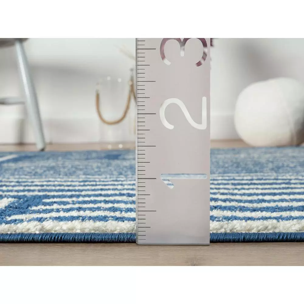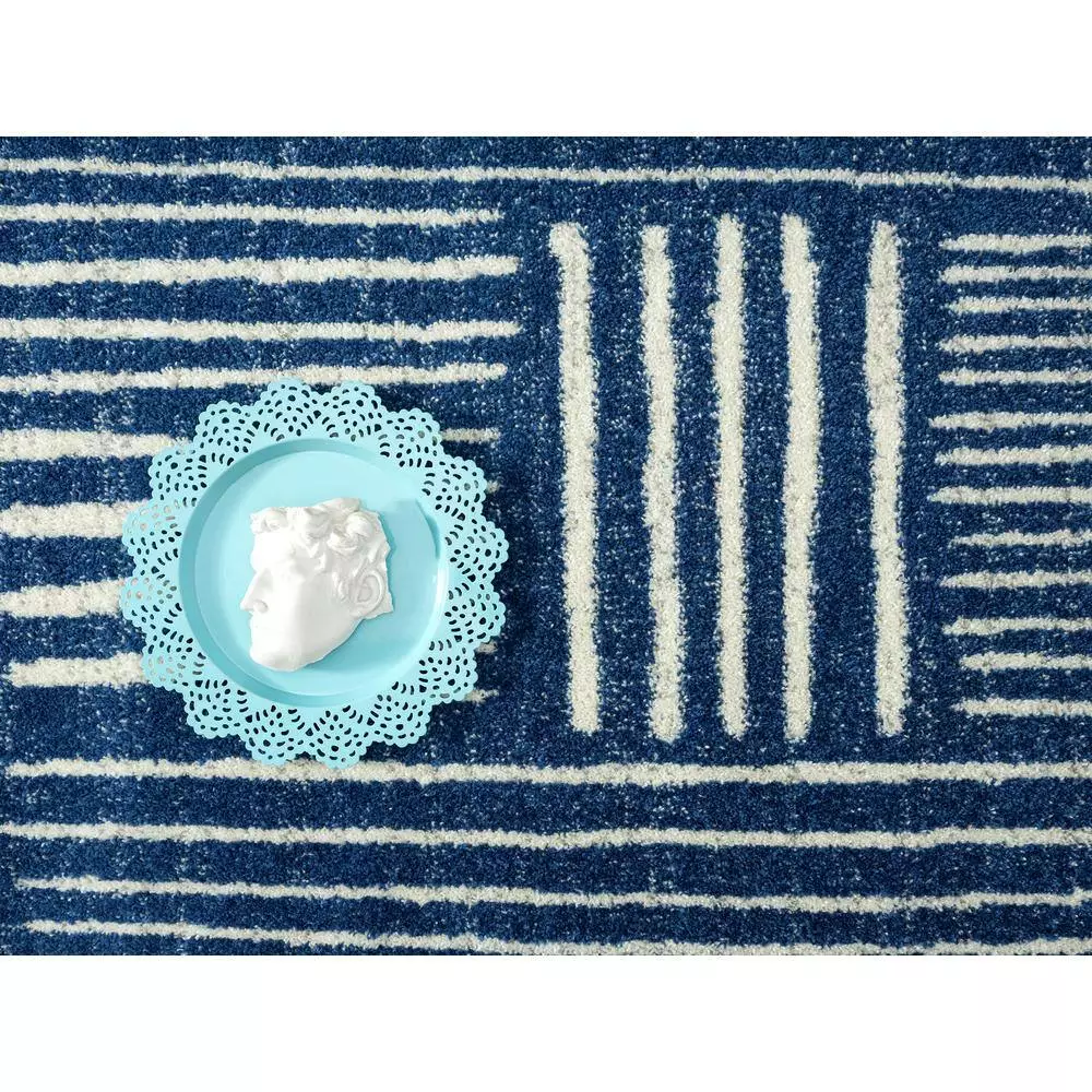 Like a work of art on a painter’s canvas, this Casa rug is worthy of any world-renowned museum. Relying on the tradition of contemporary Southwest design, emotion is conveyed through the use of color and texture. The simple white background is punctuated by interwoven lines, each seeming to line up perfectly with the next as if placed with extreme precision. If you look closely at this durable rug, you’ll spot varying textures with the navy stripes, as though an artist layered them onto his canvas over several years.