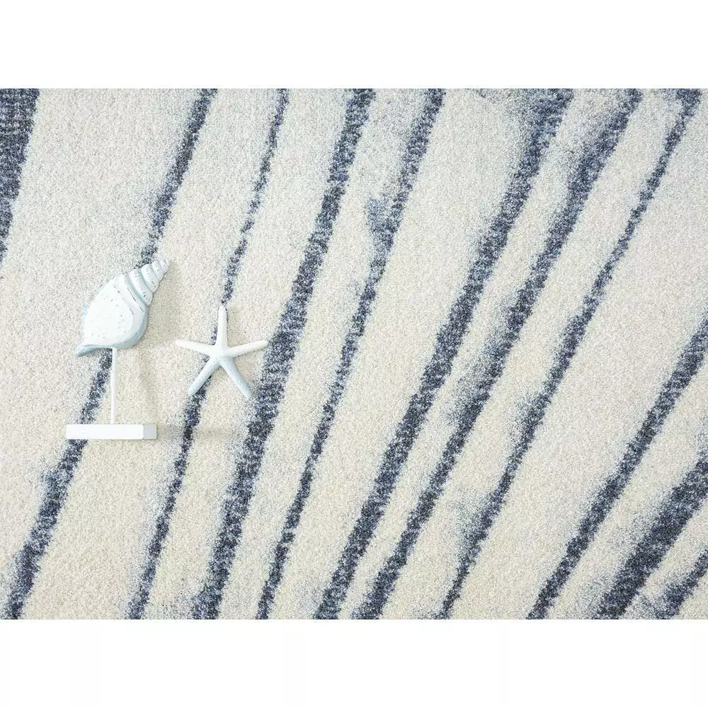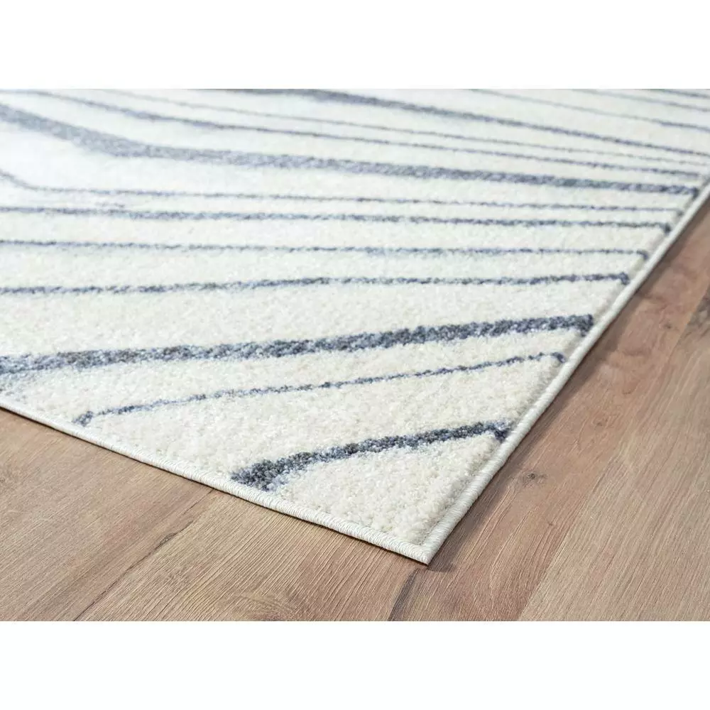Though simple, lines have the power to tell a story of their own. This linear geometric area rug does just that, relying on the structure and composition of modern art to create something entirely new. The ivory background allows the blue lines to truly pop from the background, adding limitless dimension. Perfect for adding energy and life into any space, this is an easy-care rug that offers more than meets the eye. The closer you look, the more you’ll discover from the pattern within this area rug.