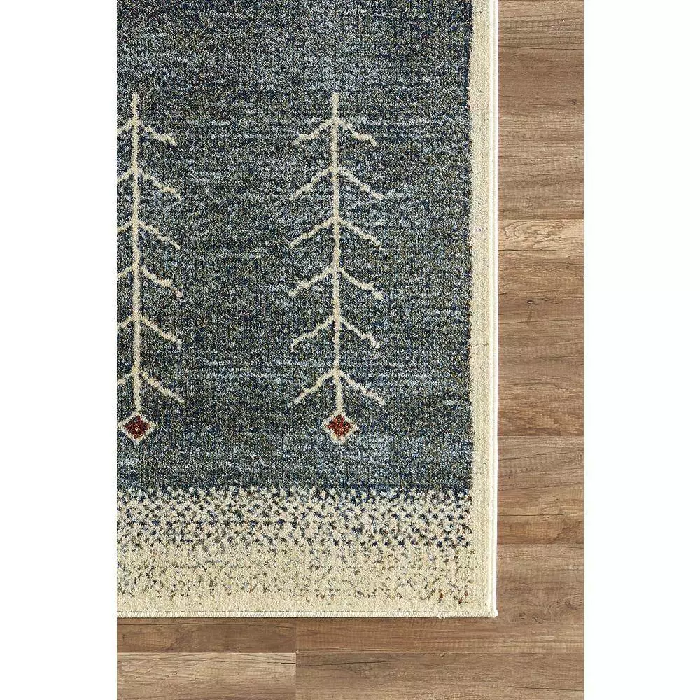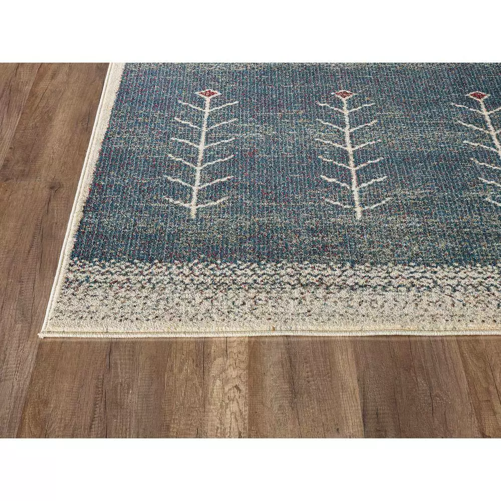 The Mesa blue southwest pattern area rug is inspired by the plains and deserts of the Southwest. In these regions, the culture closely followed the seasons and crop growth. The blue background of this area rug symbolizes the rich vibrancy of planting traditions, while the repeated pattern of plant stalks shows a season of renewal and growth. At the tip of each stalk is a rust red diamond, indicating this is another successful season. This easy-care rug feels distressed and well-loved, a sign of the hardworking tradition of the Southwest. Bring this time-honored tradition into your own interior design.