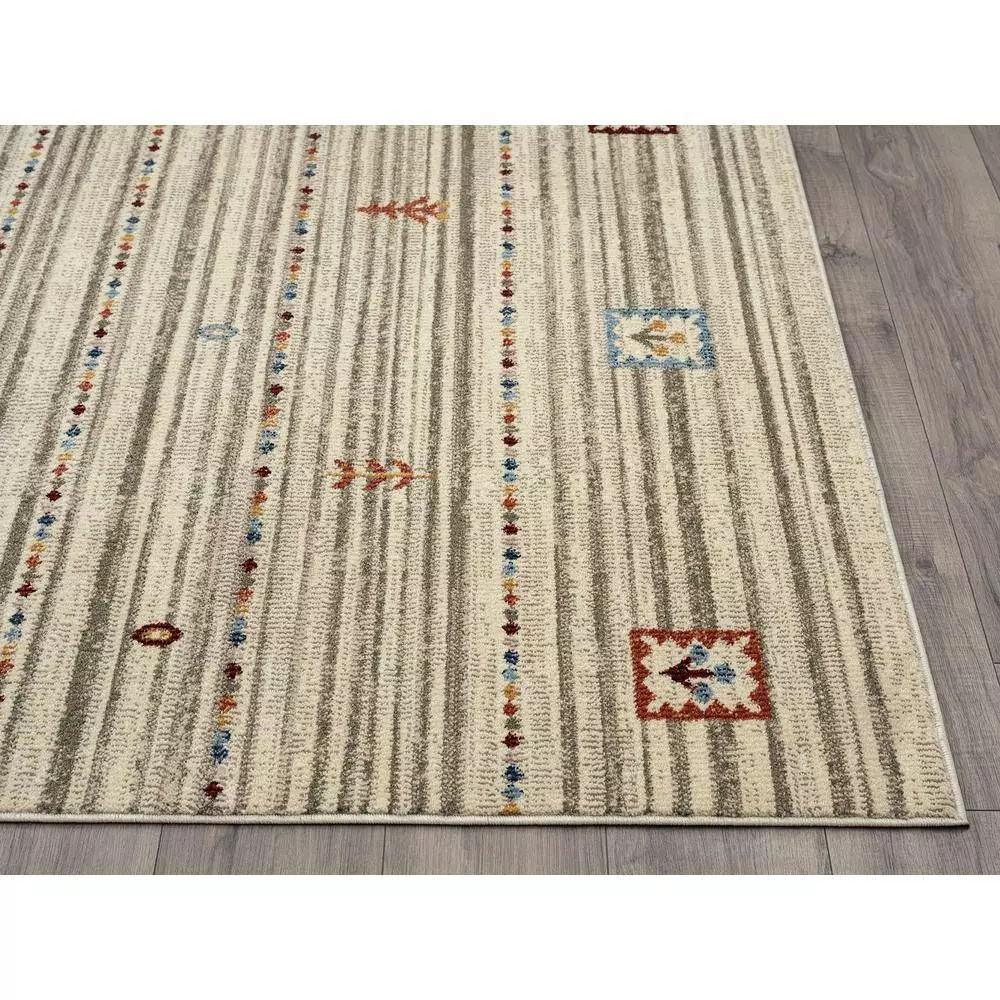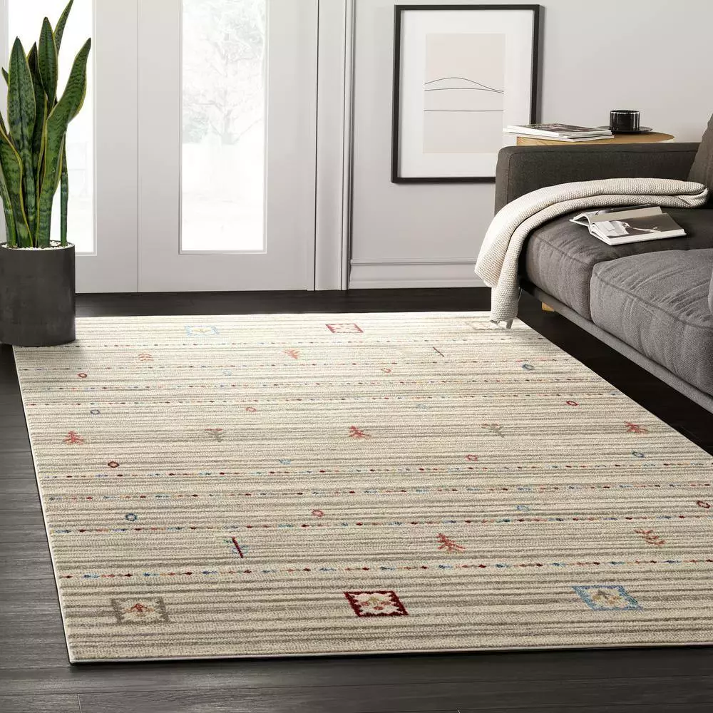 This southwestern area rug is inspired by the rich art tradition of the American Southwest. Though minimal in design, this rug is anything but simple. The beige background is neutral like the endless sands of the desert, however, it’s not alone. The bold, geometric shapes inspired by the great outdoors pattern of this rug draw the eye every which way through an artistic journey as old as time. For a seamless design that adds color and style to any space, choose this easy-care Mesa area rug.