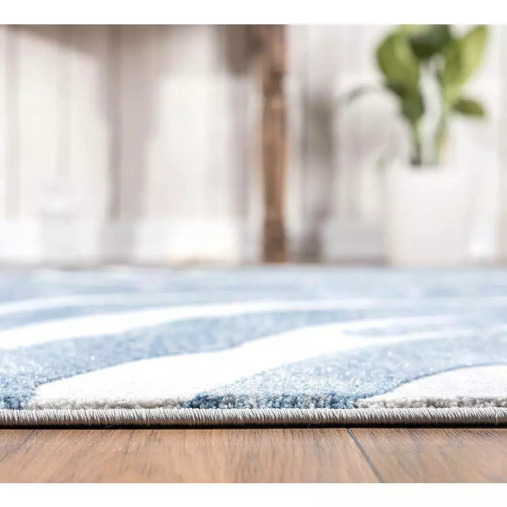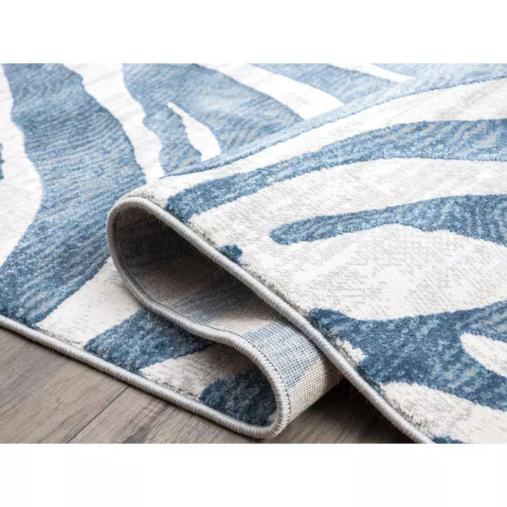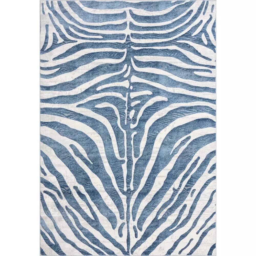 Evoke the exotic, luxurious excitement of an African safari with this contemporary area rug. Sophisticated and modern, this rug is just as functional as it is beautiful. The blue and grey color scheme gives this animal print zebra pattern a touch of sleek elegance, perfect for matching any interior design style. Bring the beauty of a safari adventure into your space. Perfect for a bedroom, office, or living room, this easy-care design will last for decades to come. Capture the excitement of the wild with the grace and luxury of modern interior design with this one-of-a-kind area rug.