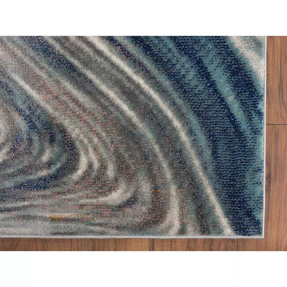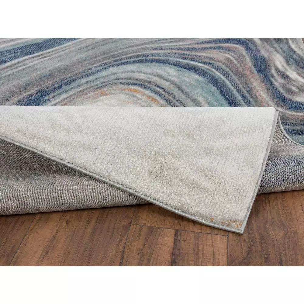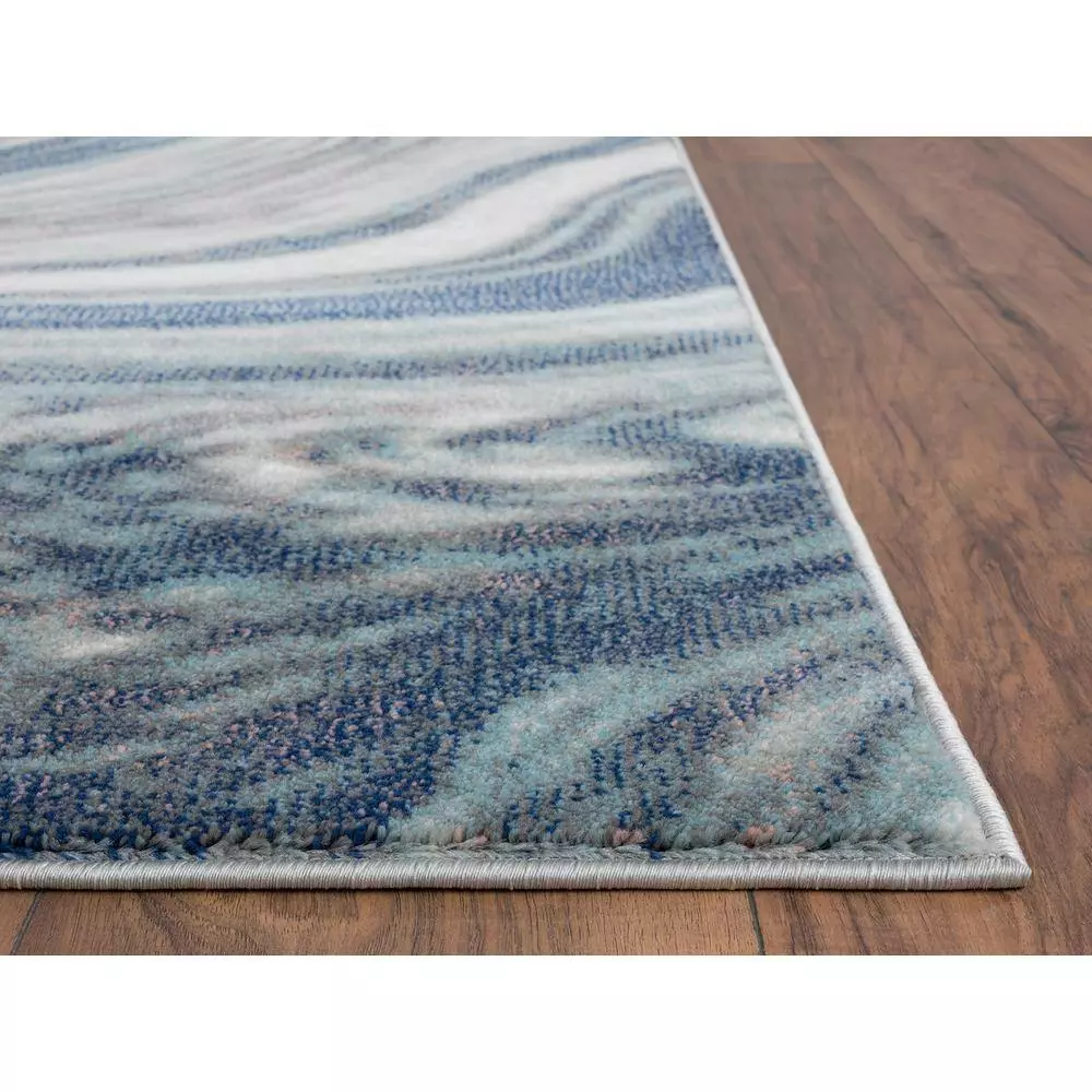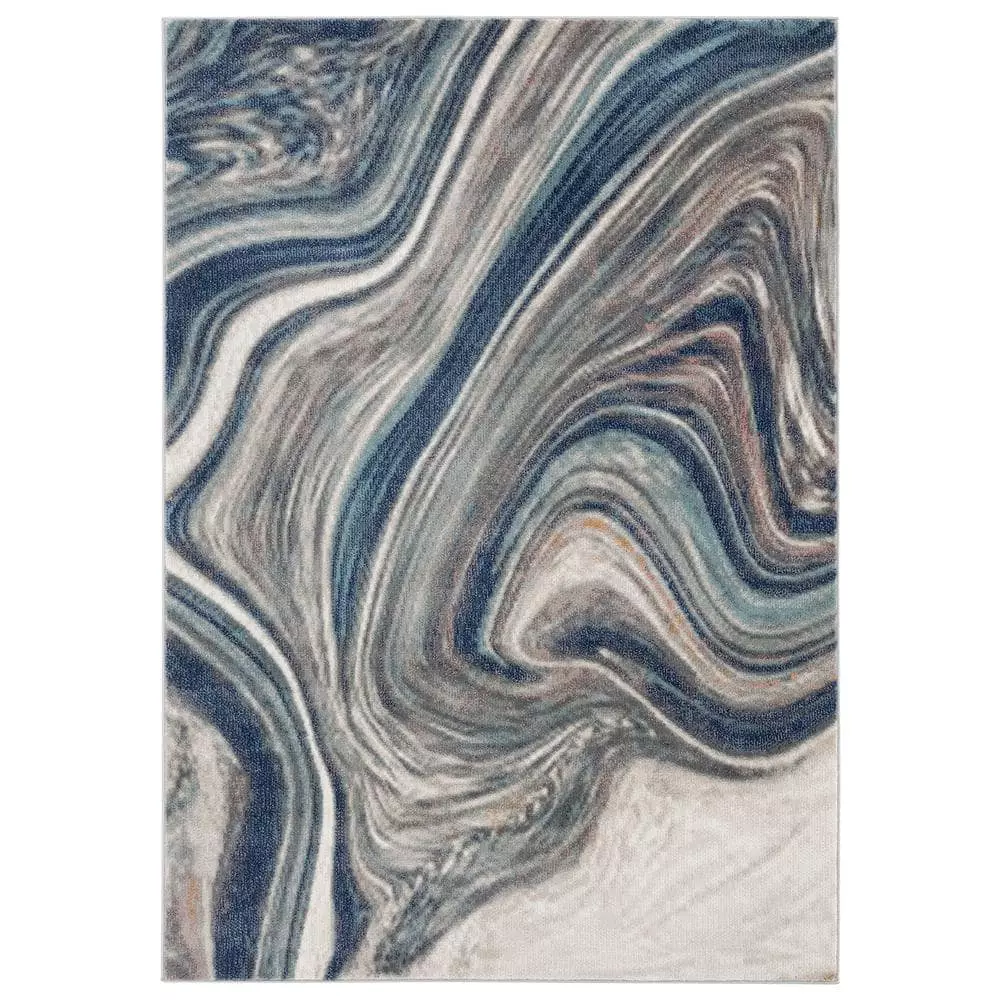 Make a statement with this contemporary rug that gives the impression of the natural flow of water and the artistry of nature with its blue and gray marbled effect design on an ivory background. Modern in its choice of design and color this rug is the perfect addition to any chic home or office that will look great now and in the future too. Made from polypropylene this rug is hard wearing, easy to clean and stain resistant. It won’t fray or shed fibers either making this the perfect easy to care for rug to add to your home.