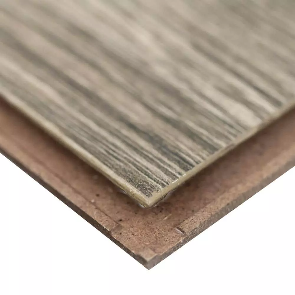 A&A Surfaces Waterproof Trinity Acton features muted greys on a Gray background, creating an incredibly realistic distressed decor. The look is rustic and reminiscent of the shore; the floor showcases the knots and cracks found in more costly reclaimed wood. The neutral Gray colors are a top choice for classic spaces which will help brighten any room. Trinity Acton is the perfect floor for extreme levels of use. The high-density, 10 mm thick planks coupled with an especially wear-resistant AC4 rating surface make this floor suitable for light commercial use as well as active residential households.