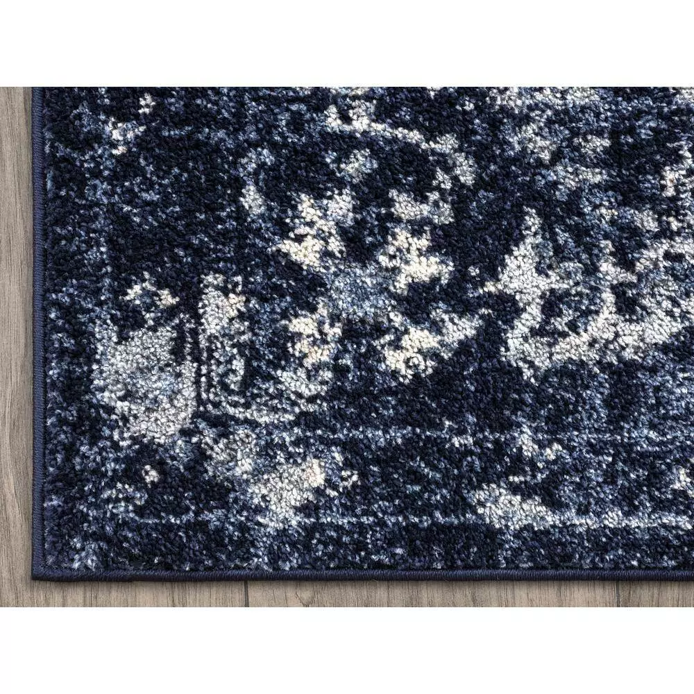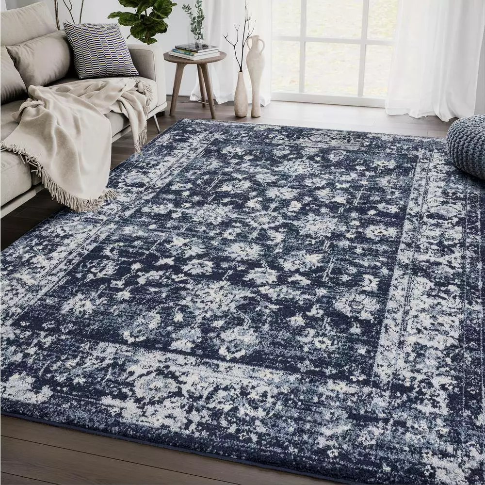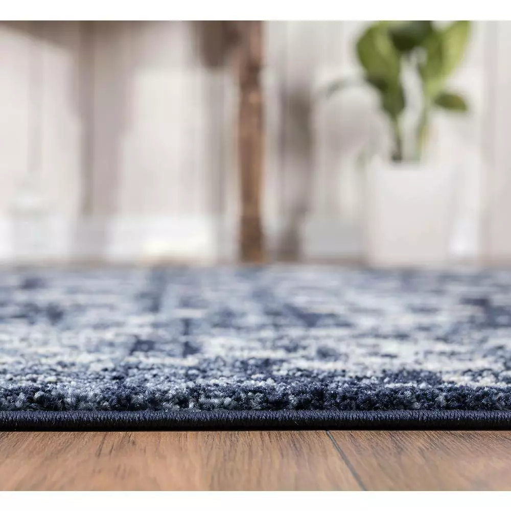 Give your room a warm and inviting look with this handsome area rug. It’s soft and welcoming underfoot, warming up cold toes on chilly mornings. A faux distressed look gives it a slightly antique vibe that oozes heirloom quality, and the bold blue color draws instant attention to your floor while adding a jolt of excitement to the space in front of a sofa or seating group.