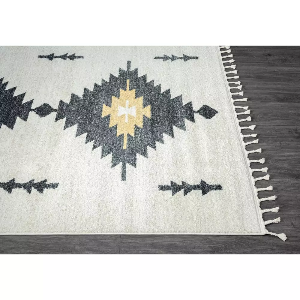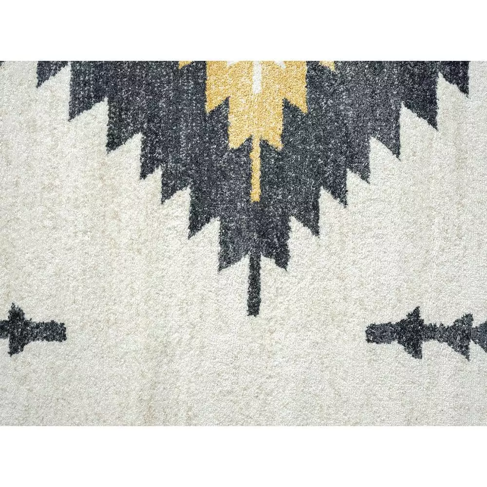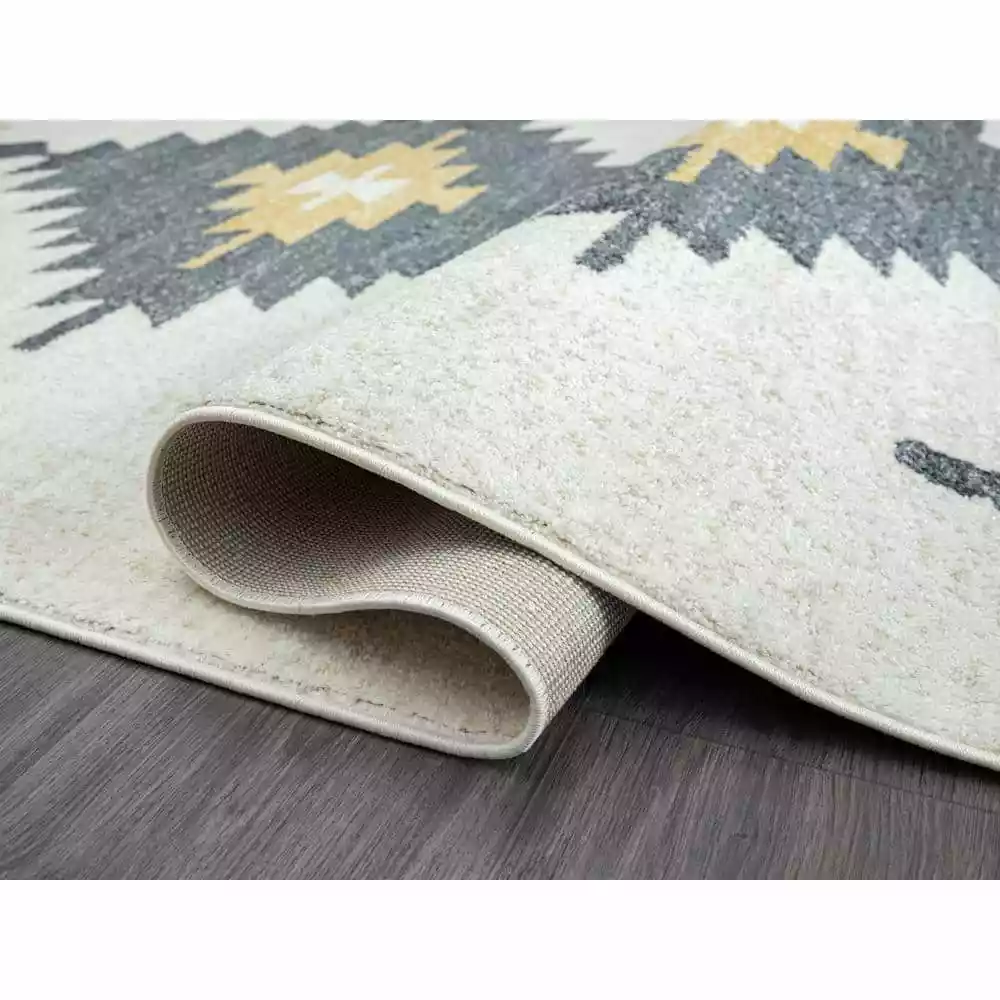 Like the sweeping deserts of the American Southwest, the Tulum Contemporary Southwest Area Rug is a study in calm, warm design. The cream background is effortlessly neutral, seamlessly blending with any existing style aesthetic in your space. Meanwhile, the Southwest-inspired pattern resembles the symbolism of local tribes and communities. The charcoal and gold tones of the geometric shapes are like the silhouette of the setting sun against the trees, impossible to look away from. Paired with the easy-care durability of this rug, this is truly a work of art.