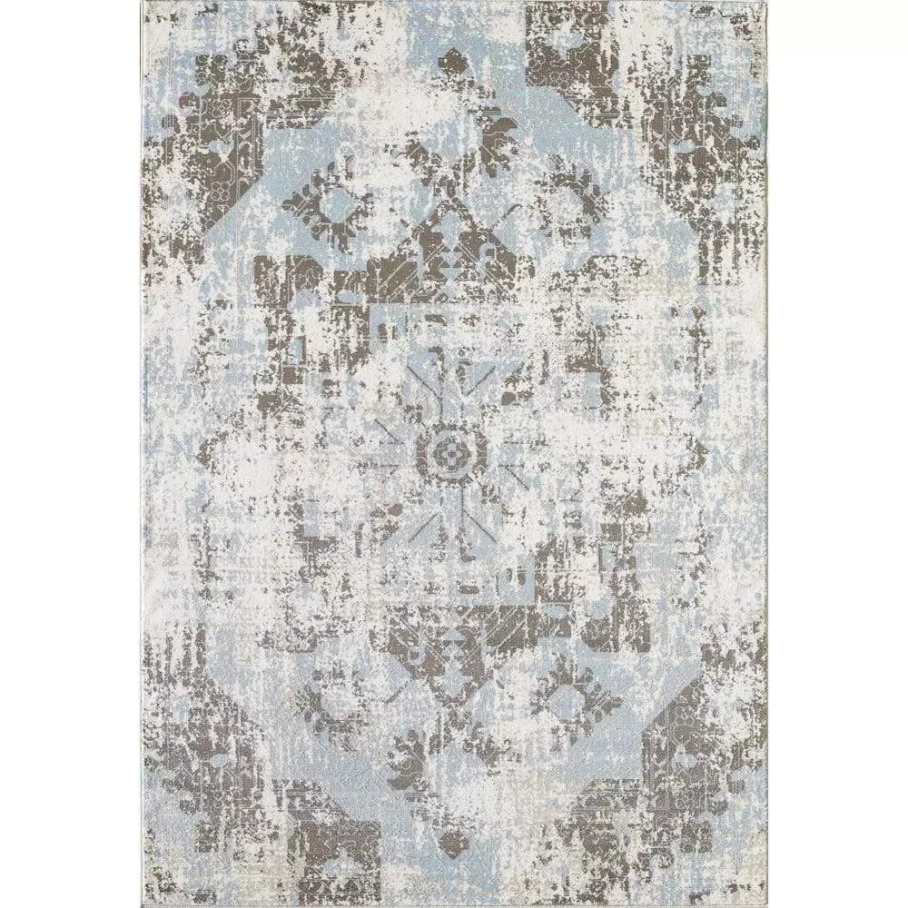With worn-in charm, this distressed area rug is infused with modern, trend-setting colors in shades of silver, light blue, and ivory. By blending classic patterns with contemporary colors, you can evoke artistic, traditional styles in your own interior spaces. The blue and silver gradient accents make this a neutral choice no matter your current interior color pallette. The refined power-loomed construction will help this piece hold up in even the most high-traffic areas of your home. This Urbana rug will transform your space into a subtle show of vintage style and modern interior fashion.