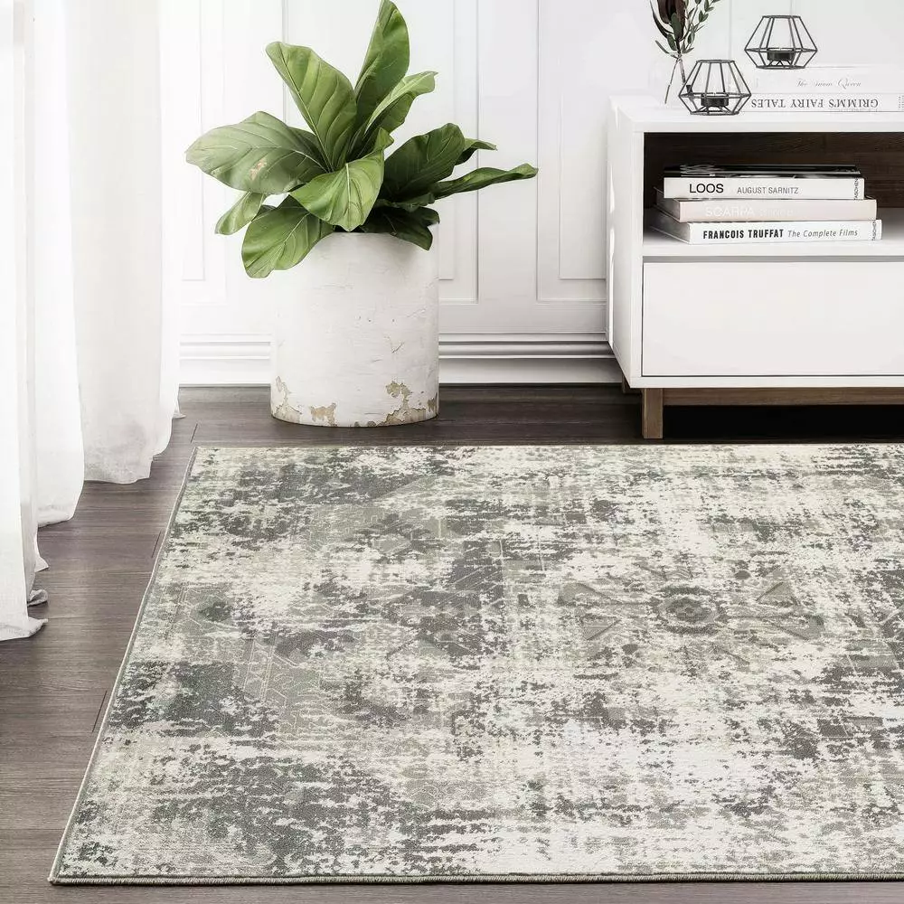 This elegant rug evokes bohemian style with its distressed texture overlaying a subtle diamond and floral pattern. The cream and grey color lend to the neutral color palette, making this the perfect addition to any living room, office, dining room, or bedroom. Drawing from the sophistication of traditional Oriental rug making styles, this is the perfect area rug to complete your decor style, no matter the aesthetic you’re looking to achieve. With a soft, easy to clean texture that will last for years to come, this bohemian matches every taste.