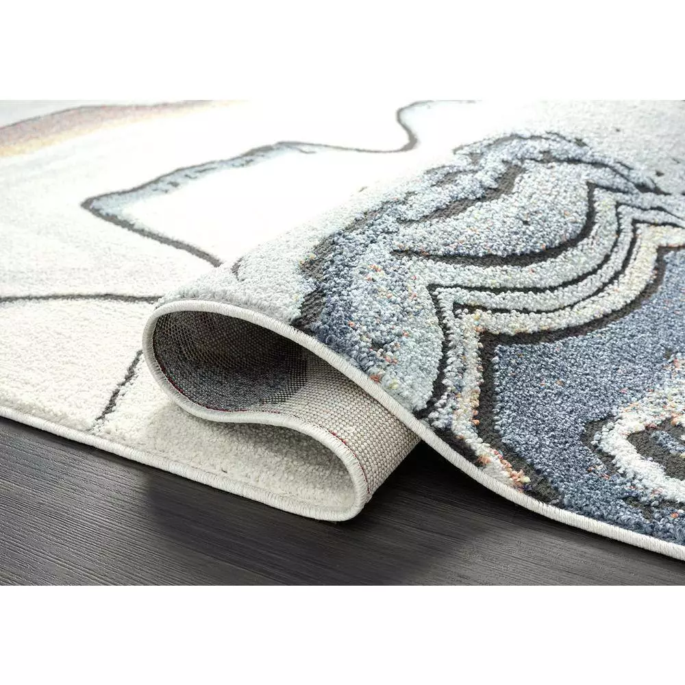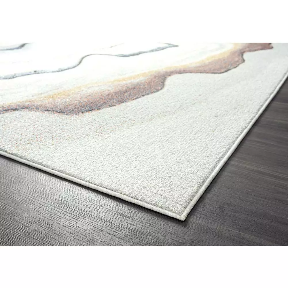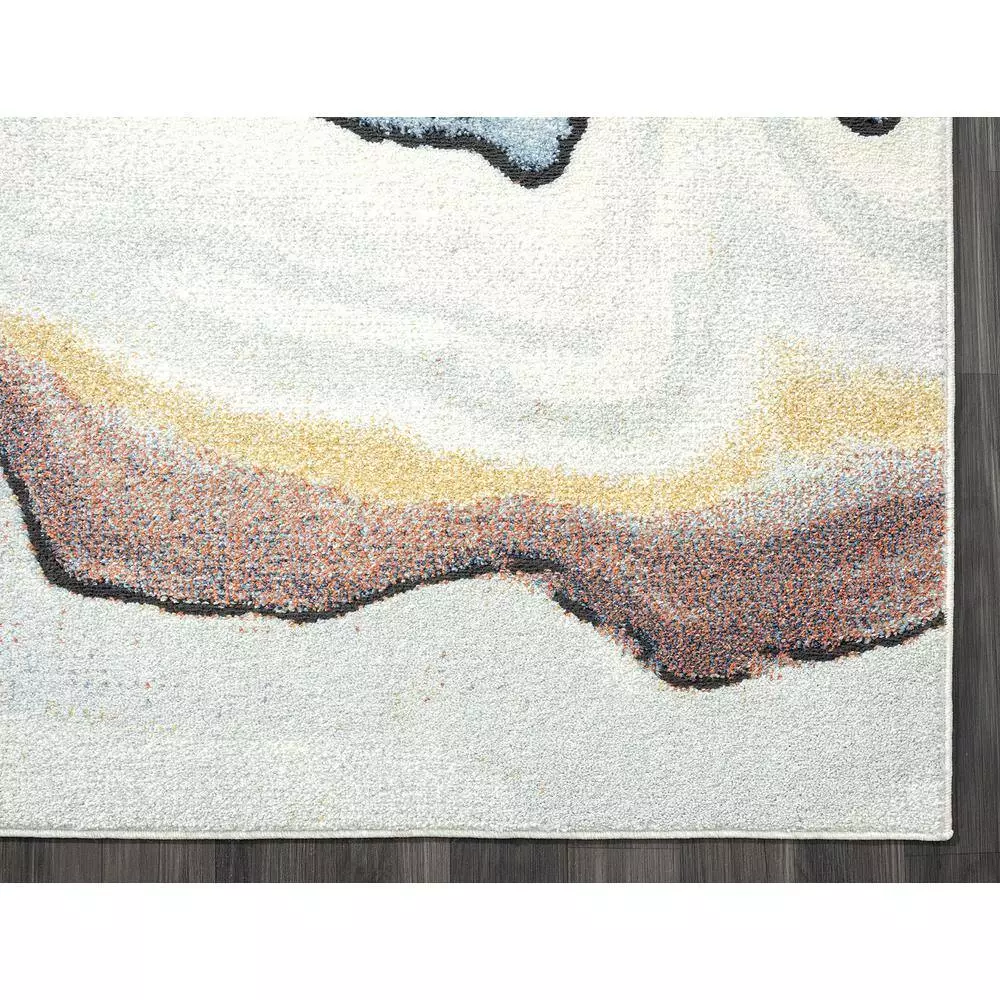 A modern take on rug design inspired by the natural precious stone in natural colors. This design from the Venus collection portrays the lateral cut of a precious stone. The lines of the stone can be seen in various natural colors blue, beige, rust, and yellow. This rug design will elevate any decor space whether it’s a living room, office space, bedroom, or kitchen.