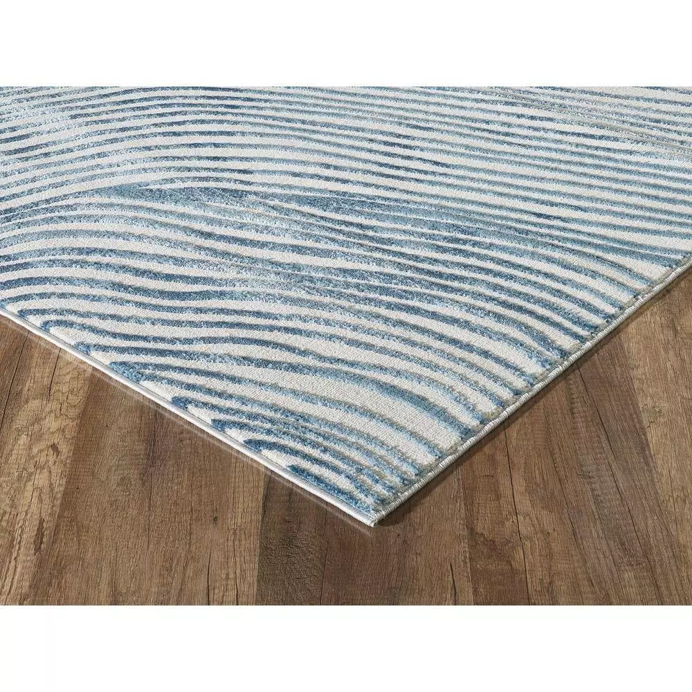 Catch a wave with this Vista modern wave blue and ivory area rug. The abstract geometric waves bring the energy of the ocean into your own home, complete with a warm shade of blue on an off white background. If your contemporary space is in need of some updated excitement, this is the area rug for you. Acting as a reminder of famous works of modern geometric art, this home decor favorite is an easy addition to any bedroom, office, dining room, or living space. Created with soft, easy-care pile, this is a showstopping decor piece that will last in your home for years to come.