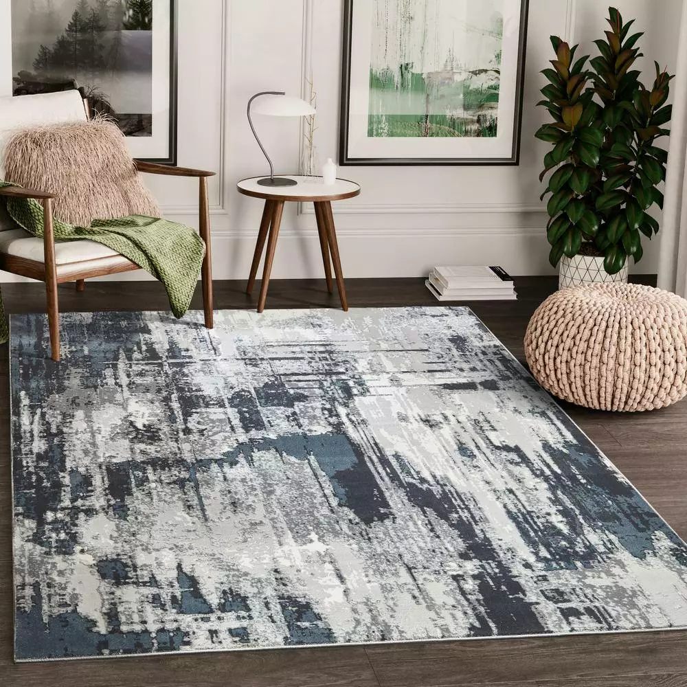 Accent your home decor style with this contemporary, distressed rug. In shades of blue, grey, and navy, this is the perfect classic addition to any bedroom, living room, dining room, home office, or beyond. The vertical and horizontal distressed lines create an abstract pattern similar to the high-end contemporary art interior design style of the past decade. This refined soft pile looks sleek and luxurious without adding too much distraction to your space. The easy-care and non-shedding of the Polypropylene and Polyester yarn simplify your home cleaning process. Add a touch of elegance and contemporary flair to any room in your home.