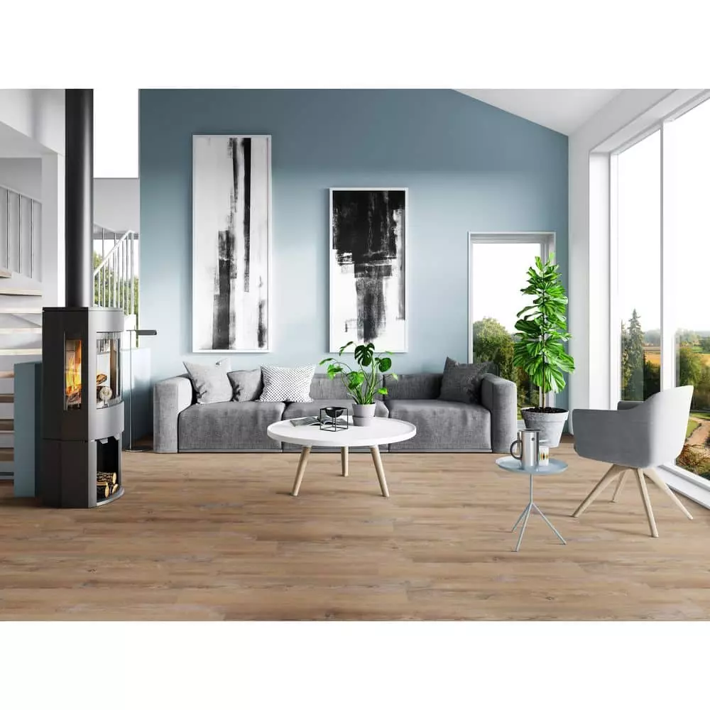 Upgrade the flooring in your home with A&A Surfaces’ Woodlett Oak Bluff Luxury Vinyl Plank flooring. This flooring combines the look of real wood with the durability of vinyl, so it’s waterproof and scratch, stain and dent-resistant. Underlayment is pre-attached for your convenience and comfort. Installation over your existing flooring is easy, thanks to the click-lock construction.